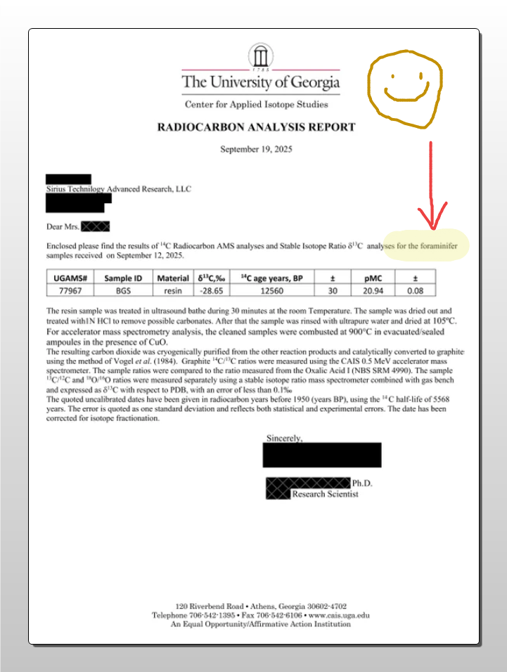 Le Dr. Greer a révélé la datation au carbone 14 de la Sphère Buga, la situant à 12 560 ans.