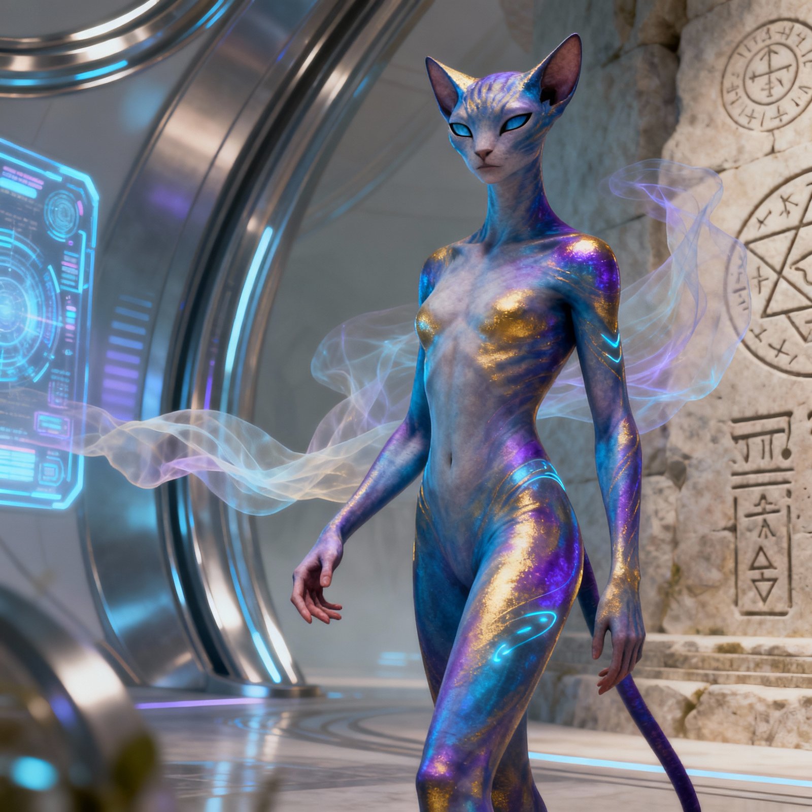 Les Aeluriens évitent l’affrontement direct, préférant agir en coulisses, guidant certains humains éveillés, fournissant des technologies cachées et protégeant les lignes de défense spirituelle et technologique. Leur origine se perd dans les légendes, mais leur présence est liée à des constellations lointaines où régnaient des civilisations pacifiques fondées sur l’harmonie et le respect du libre-arbitre.